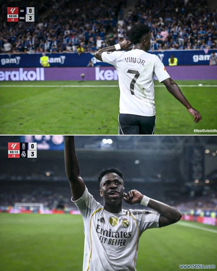 维尼修斯在皇马战胜皇家奥维耶多的赛事 中再次成为舆论焦点,讨论主要在于他对裁判 和看台的手势,其中最引人注目的是他向主场作战 球迷竖起两根手指的动作,其含义是“去西乙吧”。