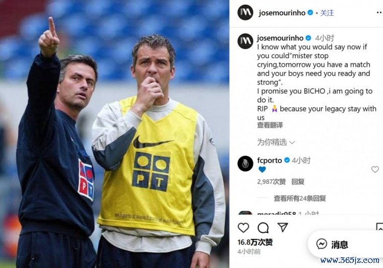 8月6日讯 前葡萄牙国脚、波尔图总经理若热-科斯塔在昨日因心脏骤停去世,曾经执教过他的穆里尼奥发文悼念。