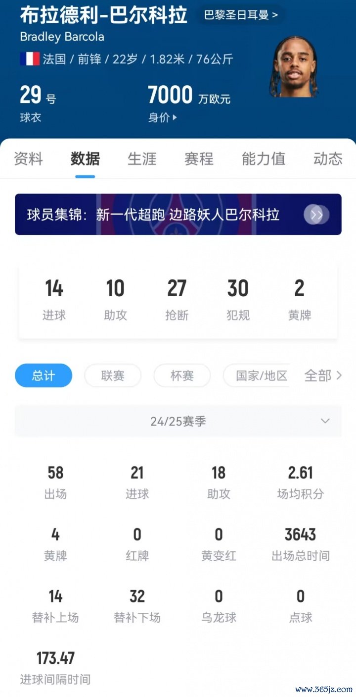 巴尔科拉上赛季随巴黎获得了多项第一名 锦标,他目前的德回转 价为7000万欧元。