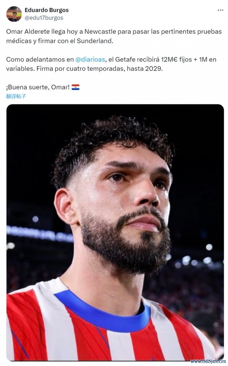Eduardo Burgos透露,阿德雷特今天抵达纽卡斯尔, 西甲接受桑德兰的体检, 大家运动家园五大联赛并与英超升班马签约至2029年,搏击资讯转会费1200万欧+100万欧浮动。