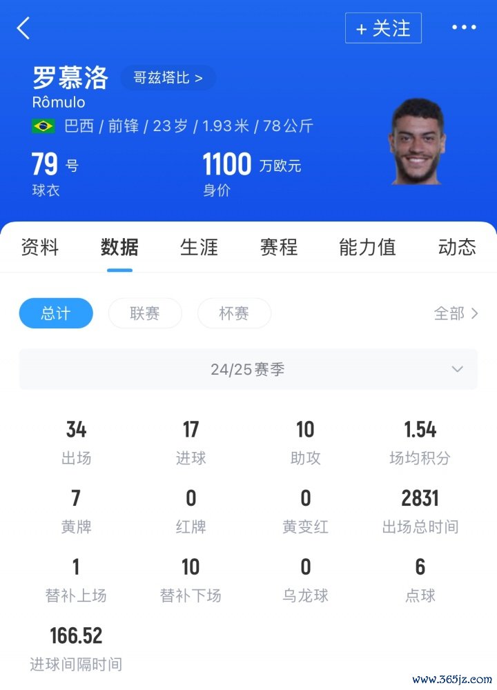 23岁巴西前场球员罗慕洛,本赛季代表哥兹塔比出战34场赛事 ,贡献17粒得分 和10次助功 。目前罗慕洛的身价为1100万欧元。