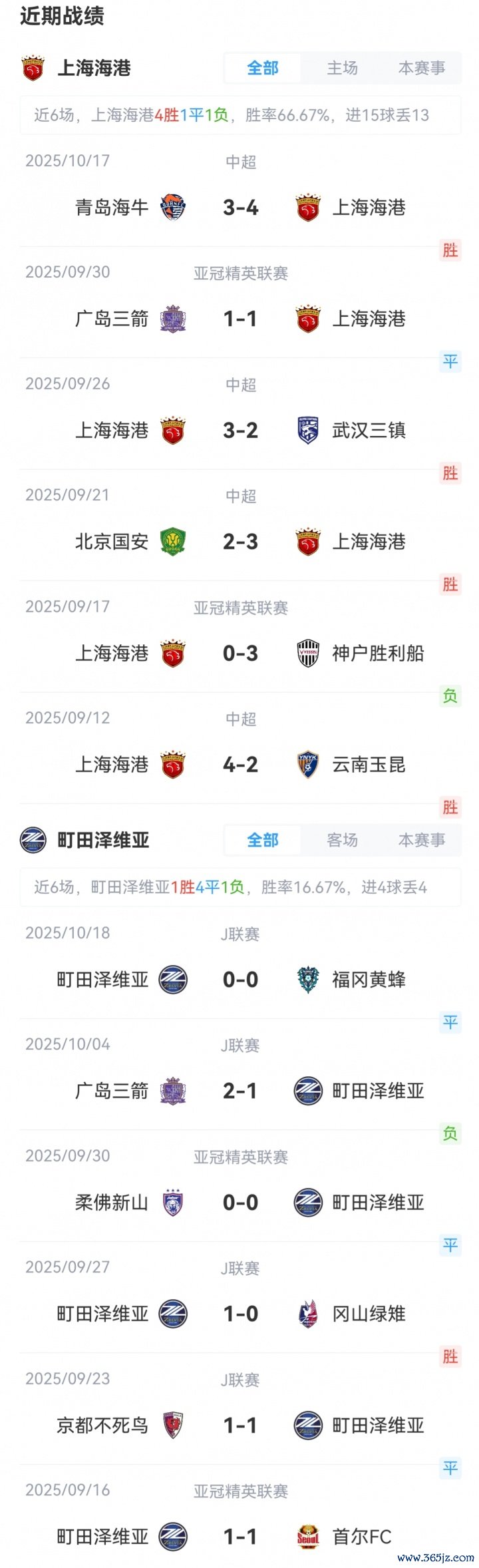 上海海港开局1平1负积1负, 大家运动家园排名东亚区第11;町田泽维亚开局2平积2分,排名东亚区第8。