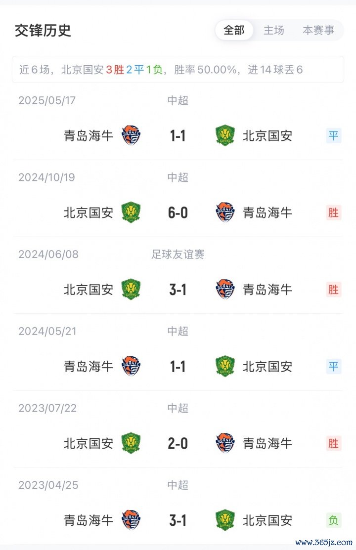 积分榜方面,国安目前15胜6平6负,积51分排在积分榜第四位;海牛则是3胜9平15负积18分排在倒数第一,双方本赛季首局 交手,海牛主场作战 1-1战平国安。