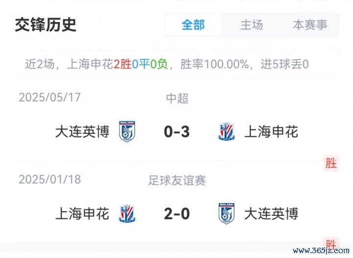 上海申花17胜6平4负积57分,排名中超第3;大连英博9胜7平11负积34分,排名中超第10。