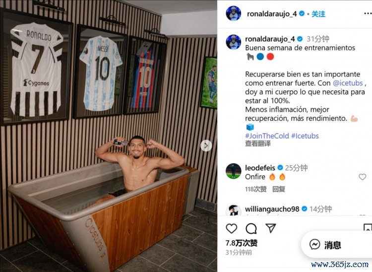 7月20日讯 巴萨后场球员阿劳霍更新社交媒体,晒出了自己在结束练习 后的复健 照。