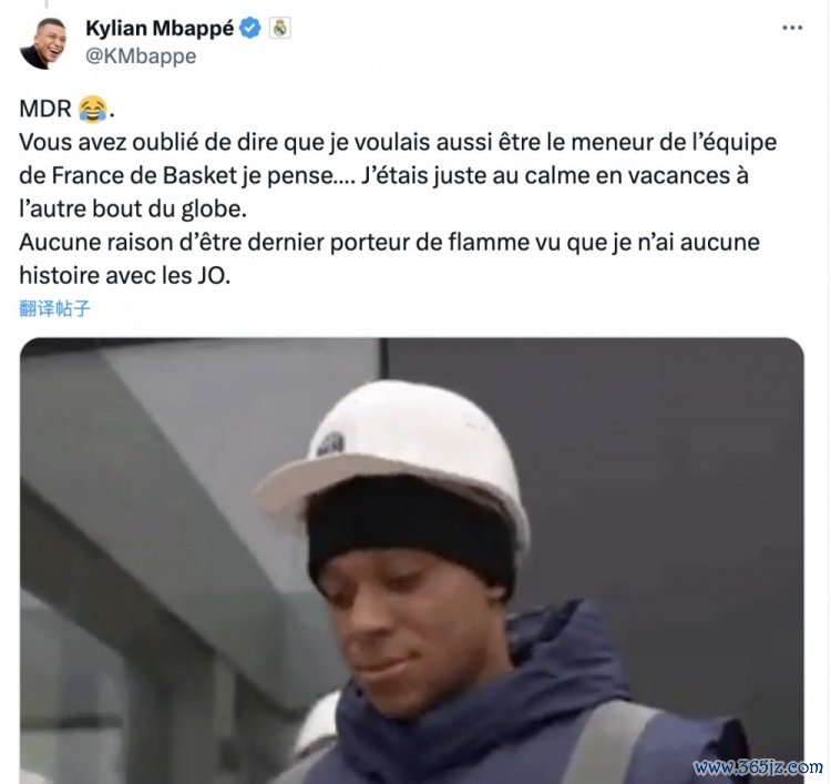 “笑死 😂。你们是不是还忘了说我还想当法国男篮的控卫?我当时不过是在地球另一端安安静静地度假而已。我根本没有任何理由去当最后一棒奥运火炬手, 西甲高清直播我和奥林匹克运动会 之间并没有任何故事。”