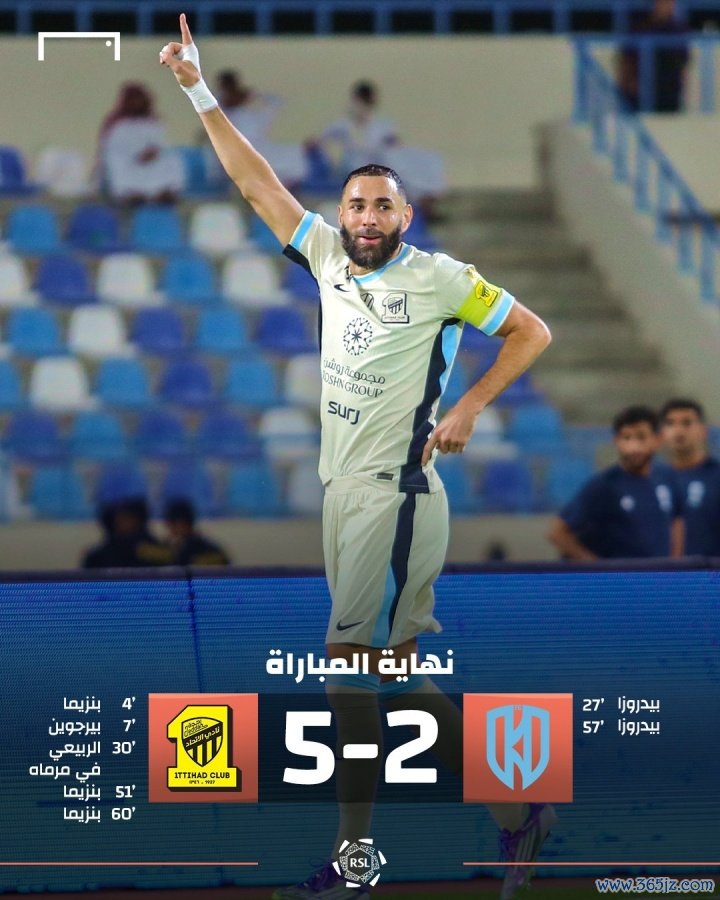 🐯本泽虎!本泽马沙特联首轮上演独中三元,吉达联合5-2大胜