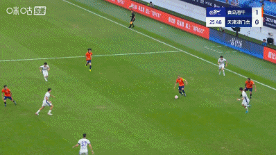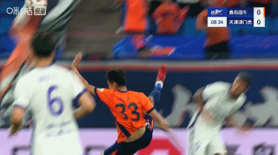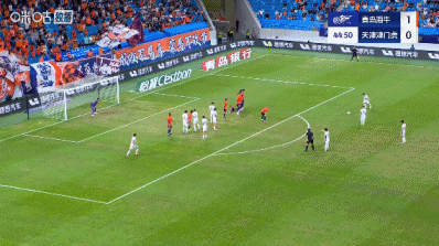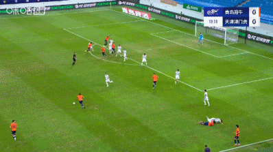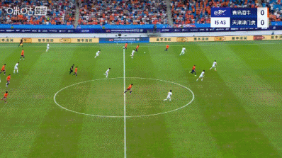 加时补赛8分钟。上半场赛事 结束,青岛海牛1-0天津津门虎。
