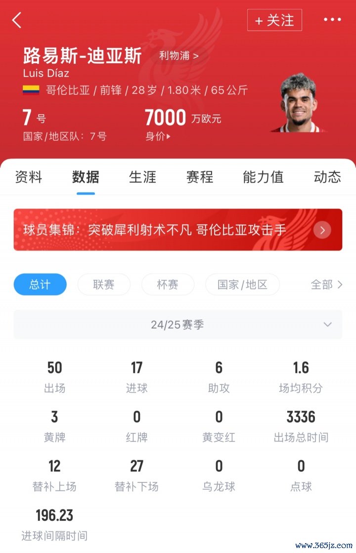 迪亚斯时年28岁, 西甲西甲直播上赛季为利物浦出场50次, 大家运动家园取得了17粒得分 和6次助功 ,目前其德回转 价为7000万欧元。