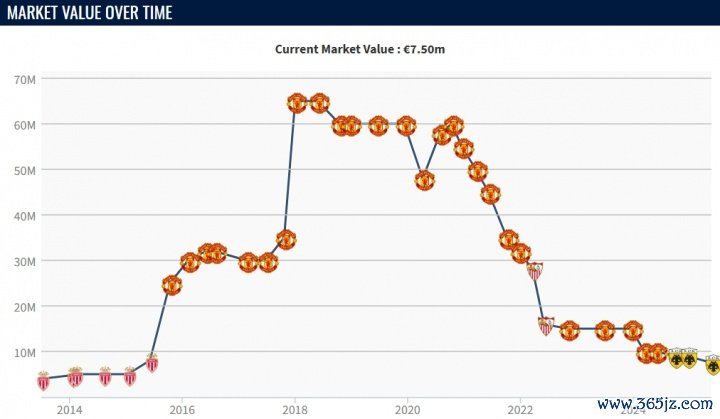 在去年,马夏尔与曼联合同到期后以自由身加盟雅典AEK,据此前报道,球员税后年薪为250万欧元,至今为球队出场24次,贡献9球2助。马夏尔如今的德回转 价也已经跌至750万欧元。