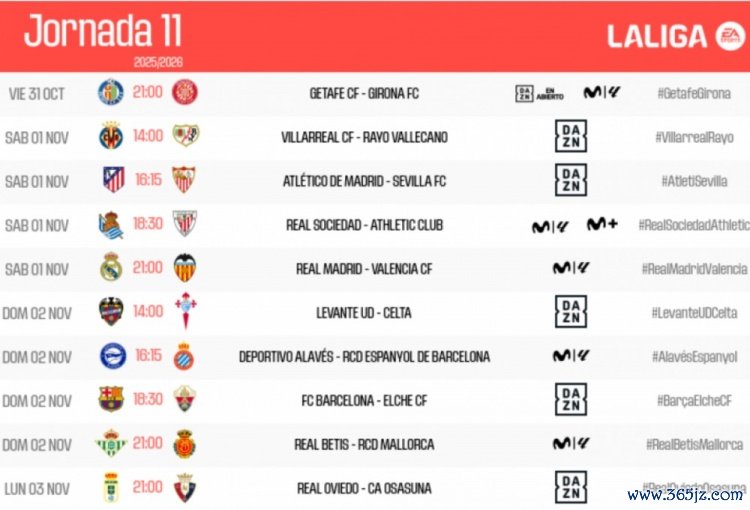 10月1日讯 今天,西甲职业联赛 在官网公布了第11轮赛程,搏击资讯足球直播吧皇马和巴萨分别在主场作战 对阵瓦伦西亚和埃尔切。