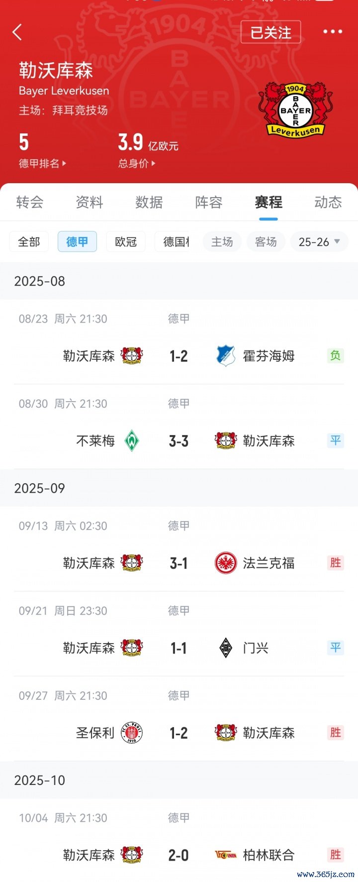 10月06日讯 勒沃库森2-0柏林联合,近4轮3胜1平,球队在开局1平1负解雇主帅滕哈赫后, 西甲目前已经来到了德甲第五的位置。