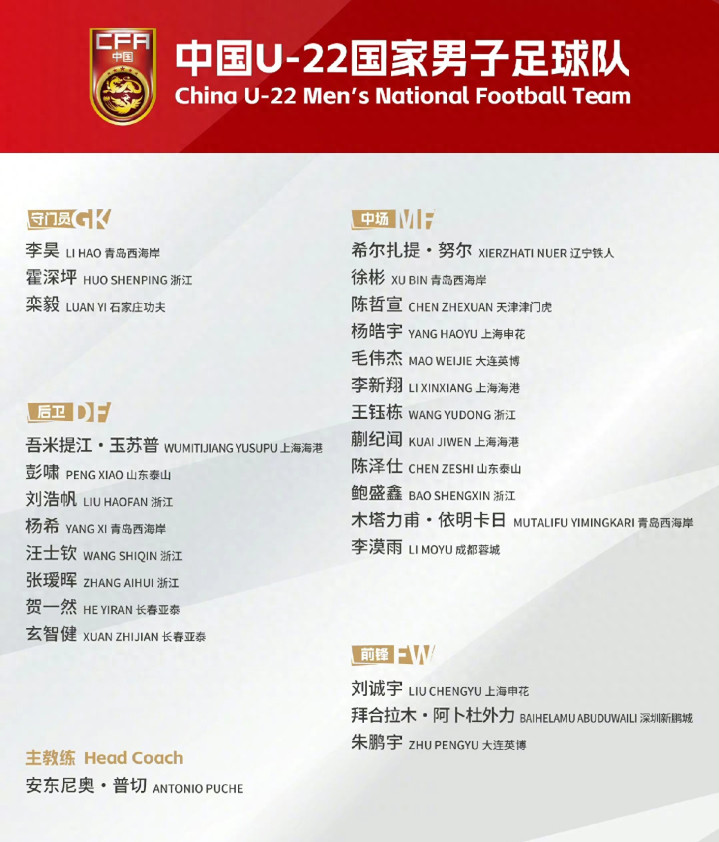 或许正是因为在那届赛事 中发挥较为出色,因此球队中的王钰栋、蒯纪闻、彭啸、杨希、贺一然、朱鹏宇、刘诚宇、毛伟杰、陈泽仕等9名队员都入选了本次U22国足集训队。