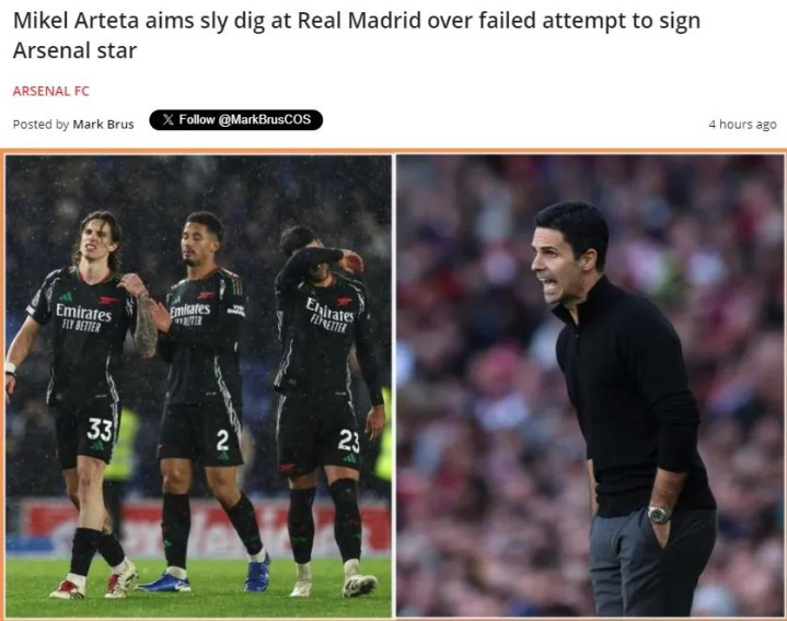 阿尔特塔在赛前新闻发布会上被问到了萨利巴和皇马的传闻,阿森纳主帅声称这名中卫告诉他自己希望为他效力而不是皇马。