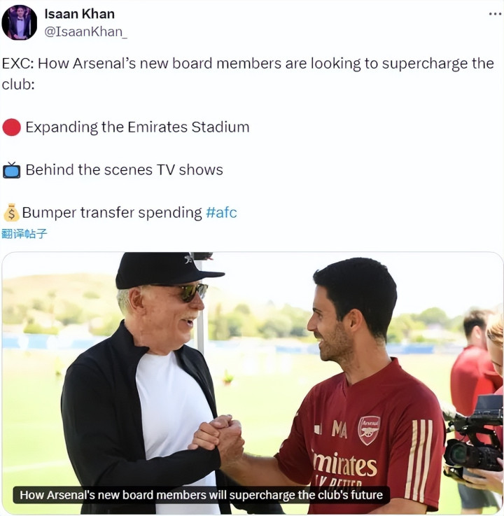 邮报阿森纳方面记者IK撰文谈到了最近阿森纳董事会重组带来的影响,包括增强俱乐部品牌号召力、扩建运动活动 场 以及增加转会预算等等。