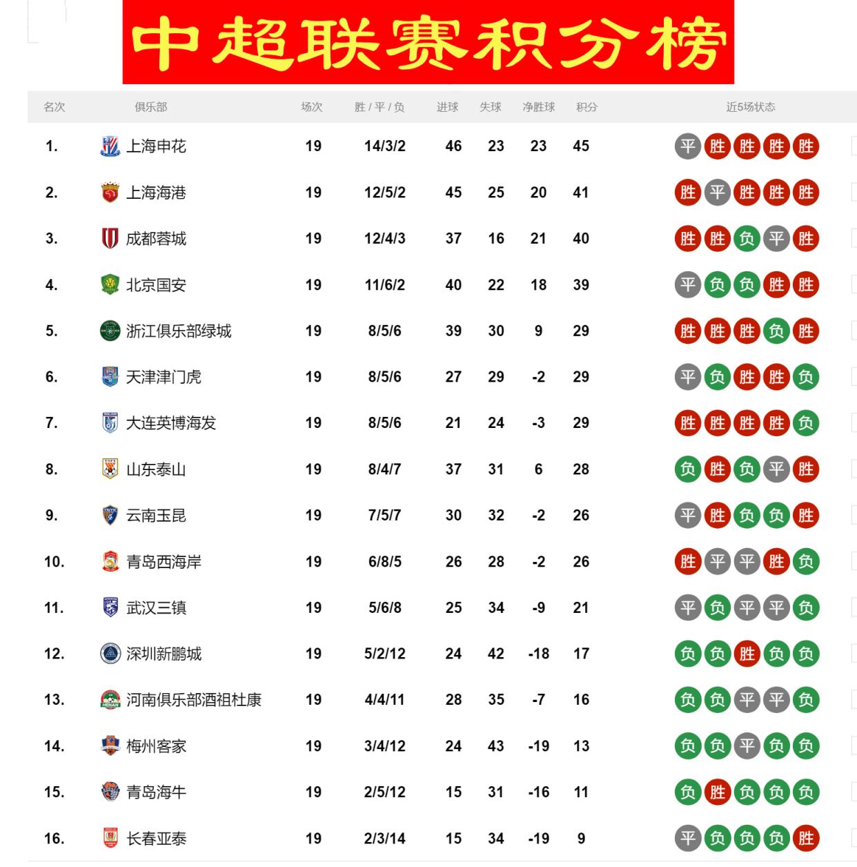 中超积分榜: 四队争冠悬念再起, 泰山第八比肩升班马, 降级圈五队组局